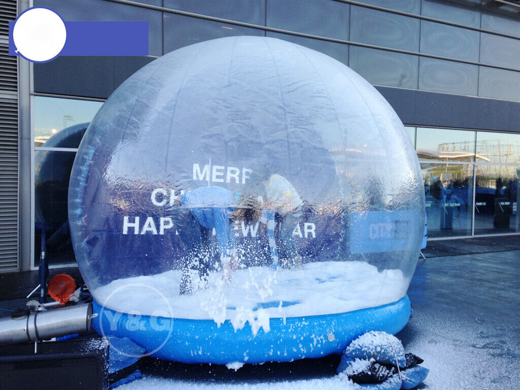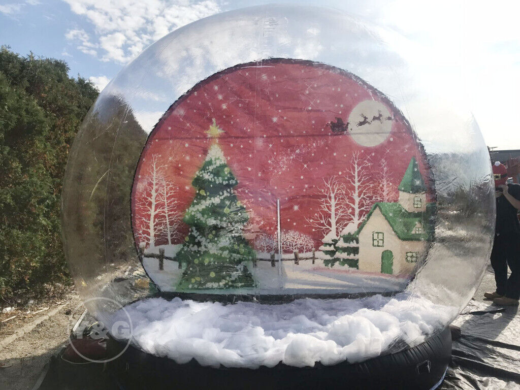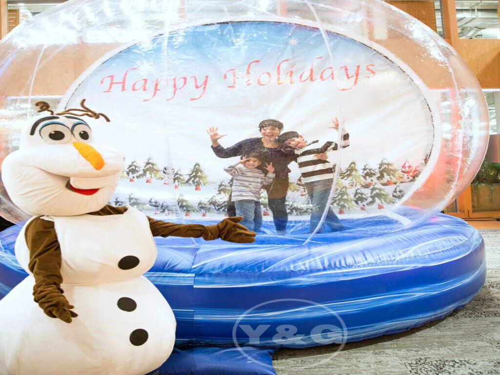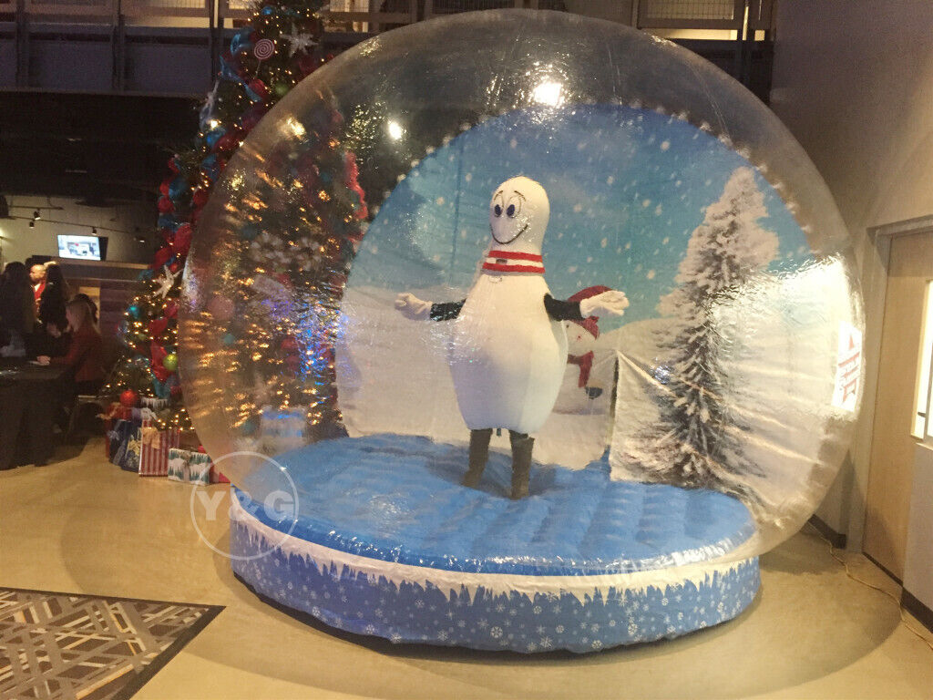 Inflatable snow globe are often used for outdoor decoration and advertising,it is transparent,so you can exhibit your products in it,at the same time,the funny and beautiful snow globe can help you attract the crowd. The inflatable snow globe can make it with Christmad backdrops,more popular for taking photos and personal show.