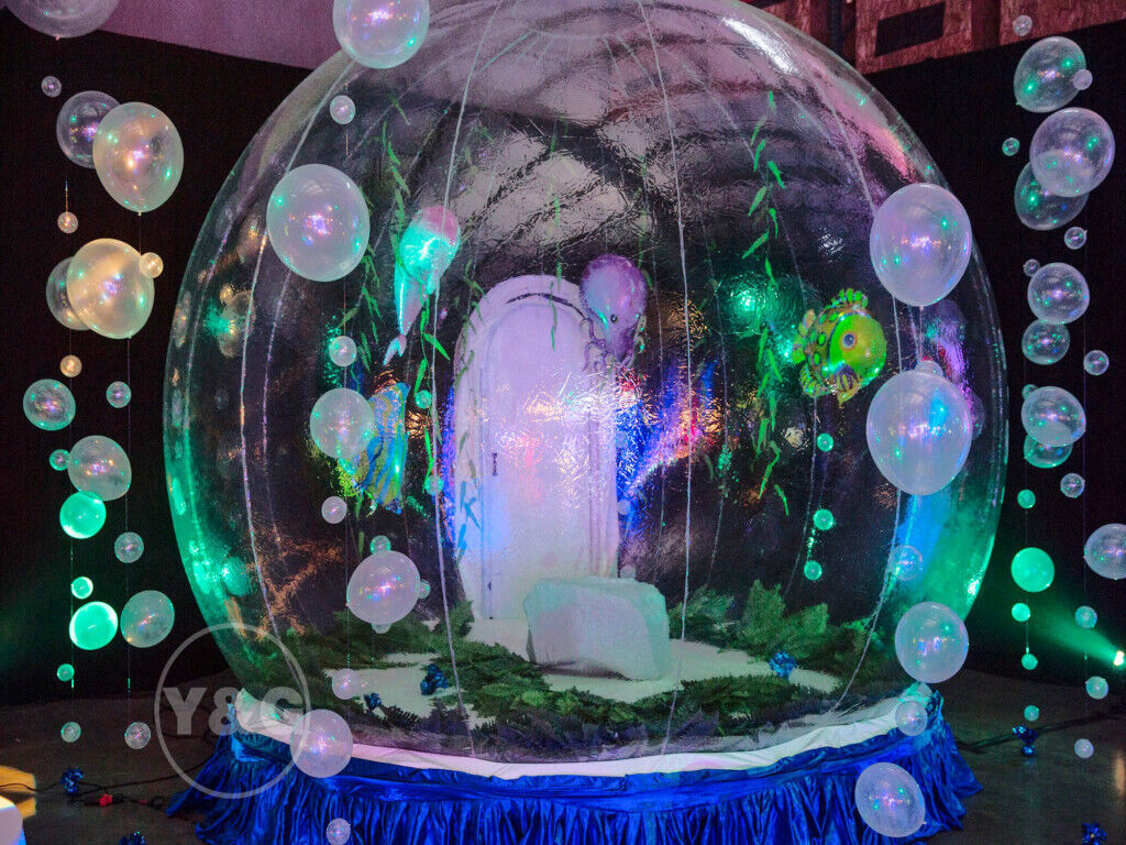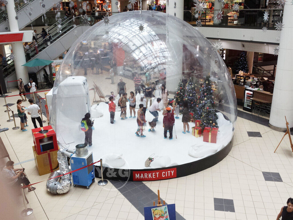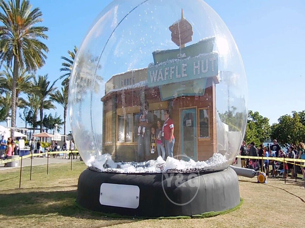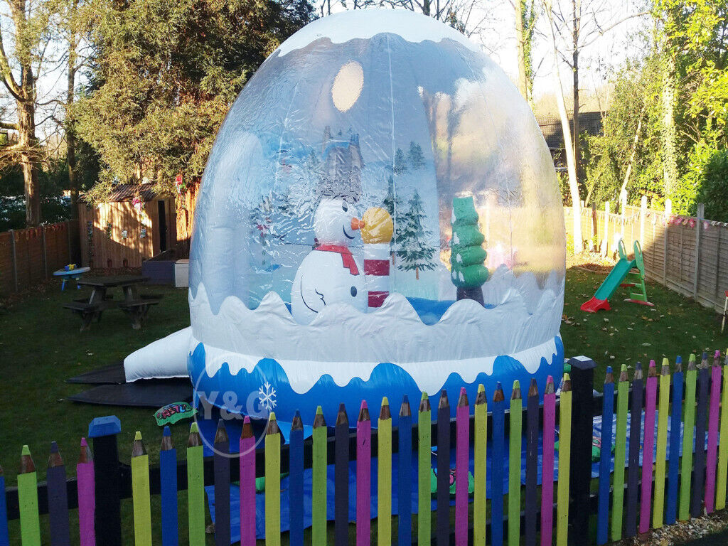 Inflatable snow globe are often used for outdoor decoration and advertising,it is transparent,so you can exhibit your products in it,at the same time,the funny and beautiful snow globe can help you attract the crowd. The inflatable snow globe can make it with Christmad backdrops,more popular for taking photos and personal show.