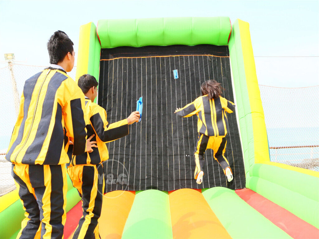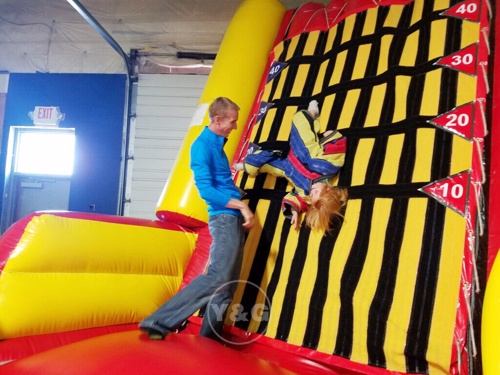 What's it like to'stick on' the wall just like Spider Man? That must be cool! But I hope someone can rescue you off the Inflatable Velcro Wall!