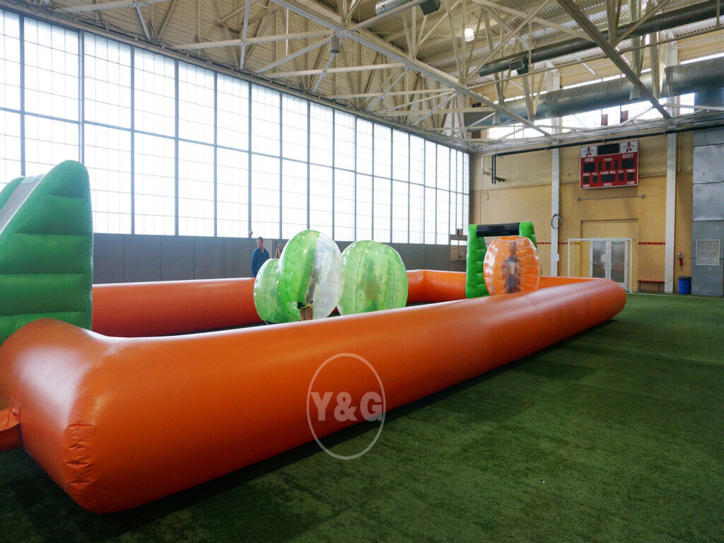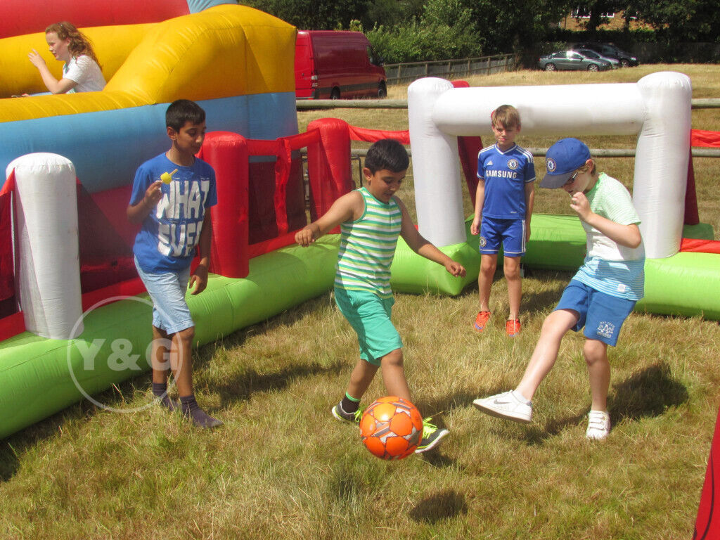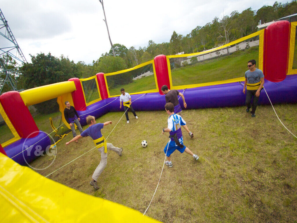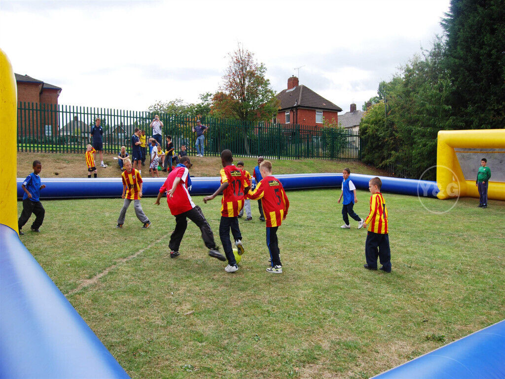 It's time for a friendly on the inflatable soccer field. I only have one request. Don't make it too easy for me to win!