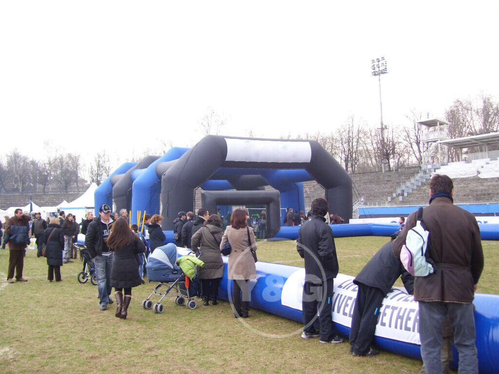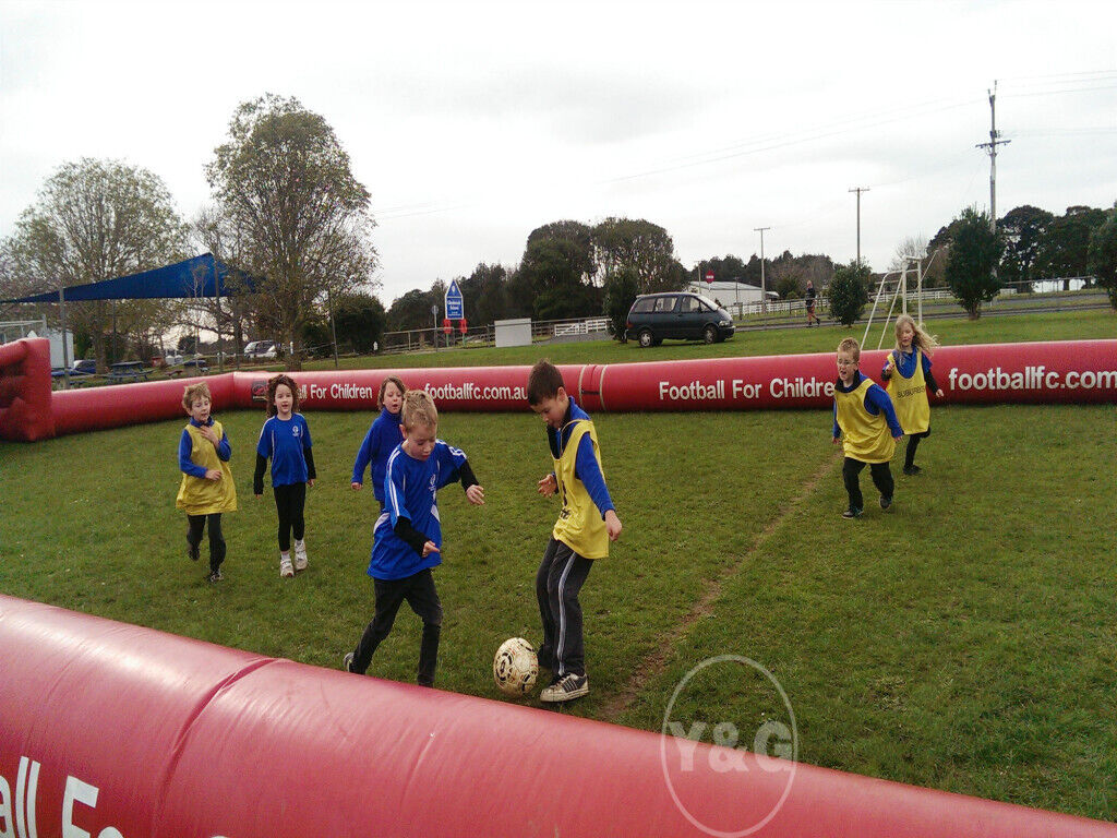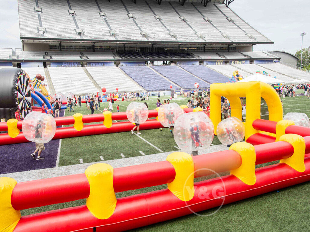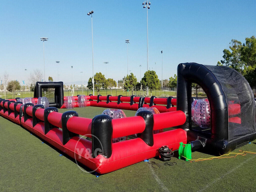 It's time for a friendly on the inflatable soccer field. I only have one request. Don't make it too easy for me to win!