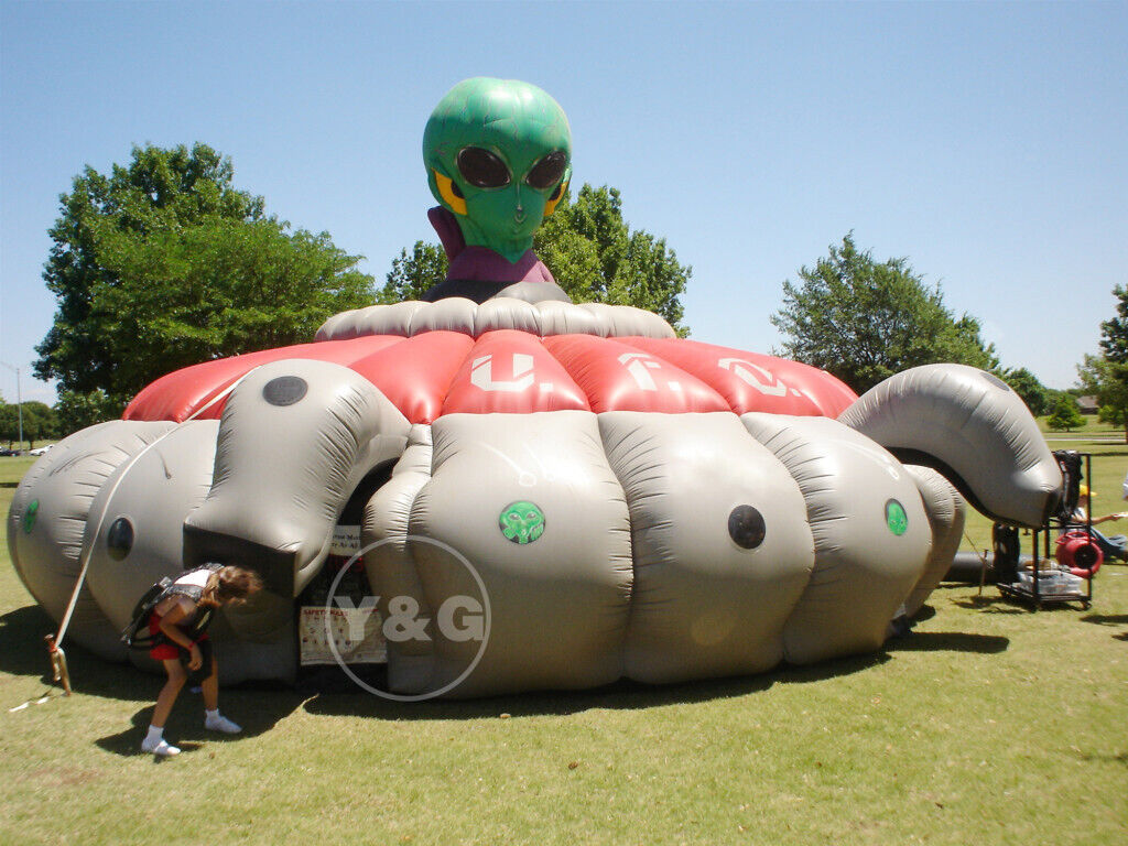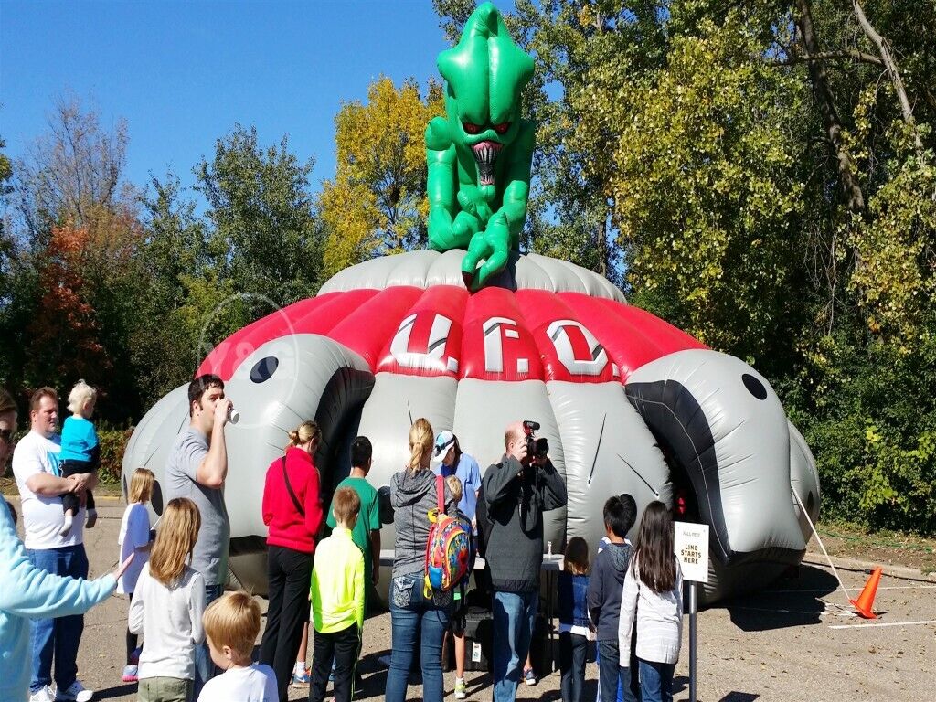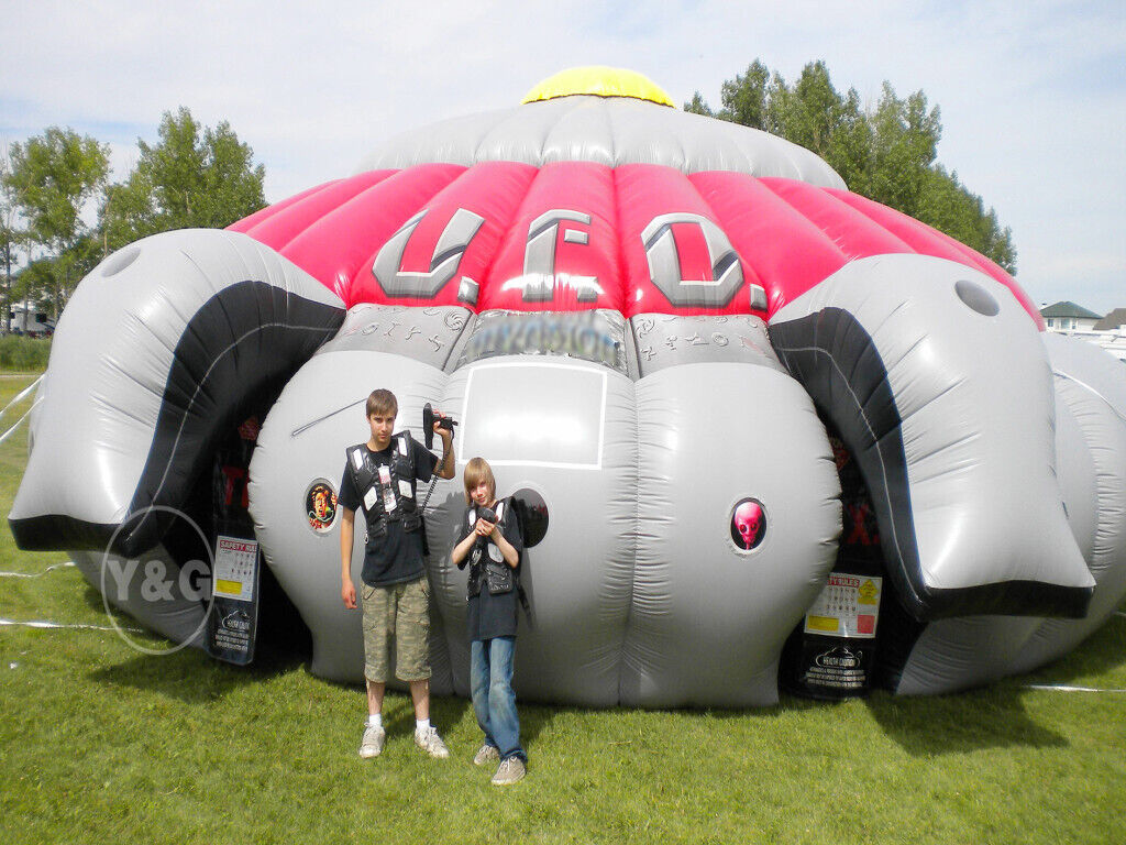 This is an inflatable maze themed with alien laser gun shooting. It is full of maze-like walls, which can hide you from the enemy. Once you encounter the enemy, you must hit them with laser gun, the more hits, the higher the score!!UFO Encounters Laser Tag are the best choice for college parties, school events, corporate entertainment days, and family days.