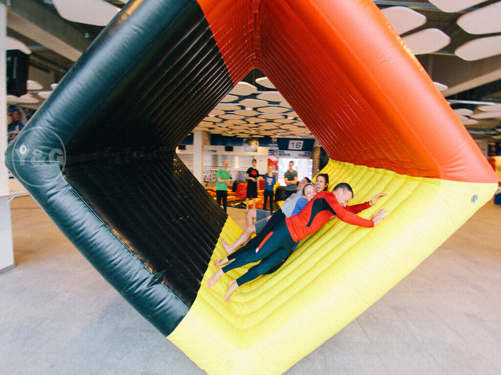 Best outdoor inflatable games for team building -- inflatable flip it cube.