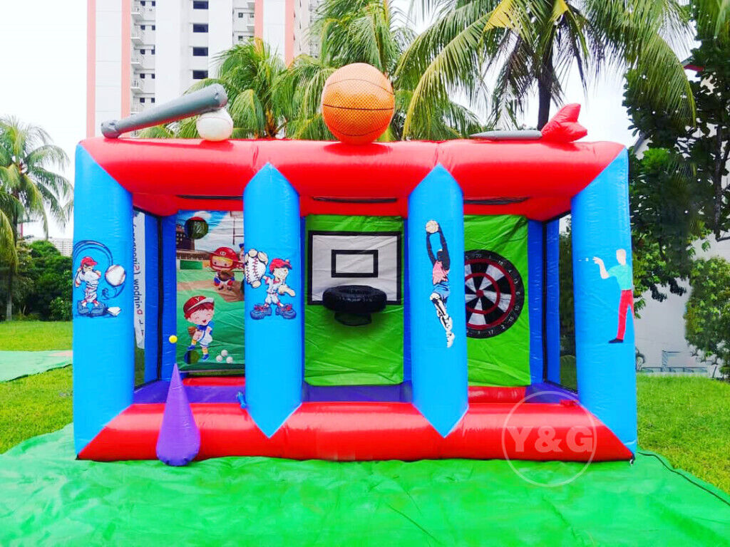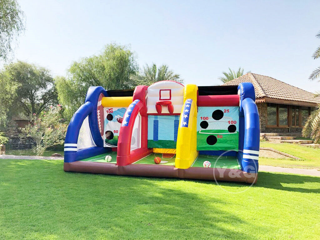 The 3 in 1 inflatable interactive game combines baseball, soccer, and basketball all into one inflatable game!!Make the kids happy all day.