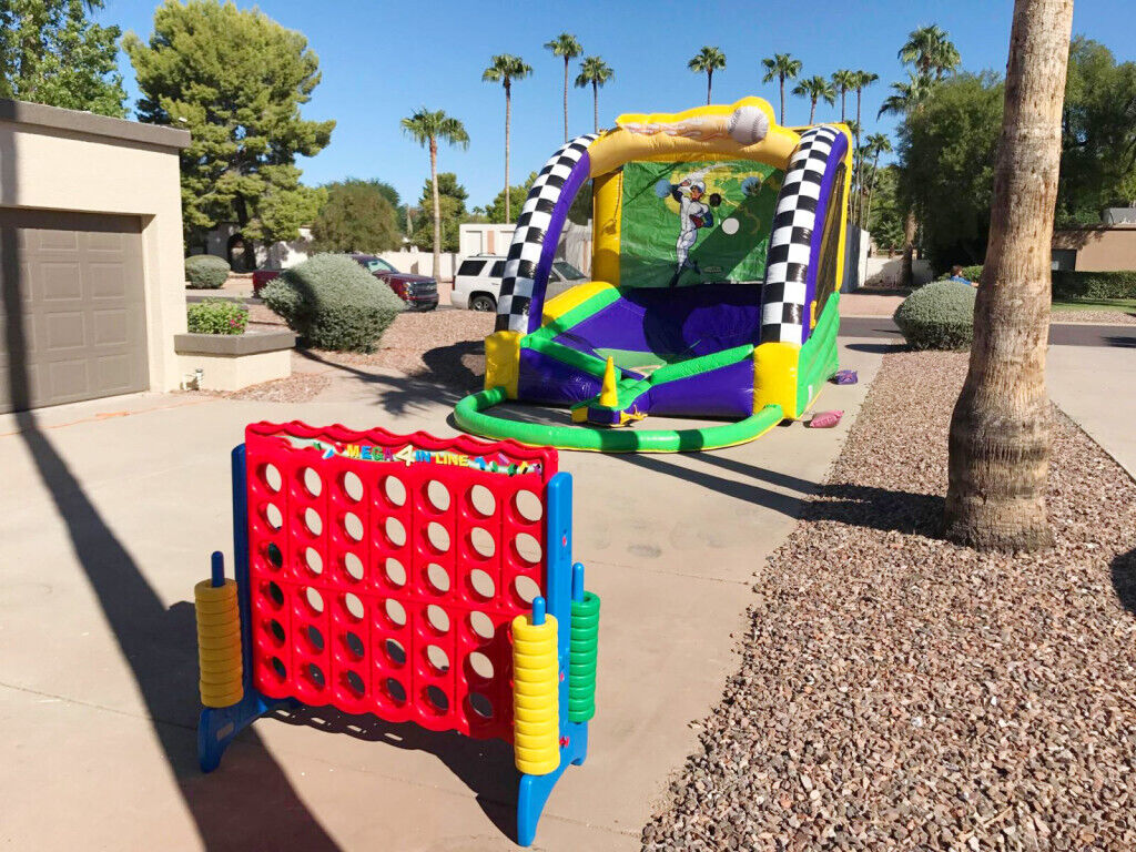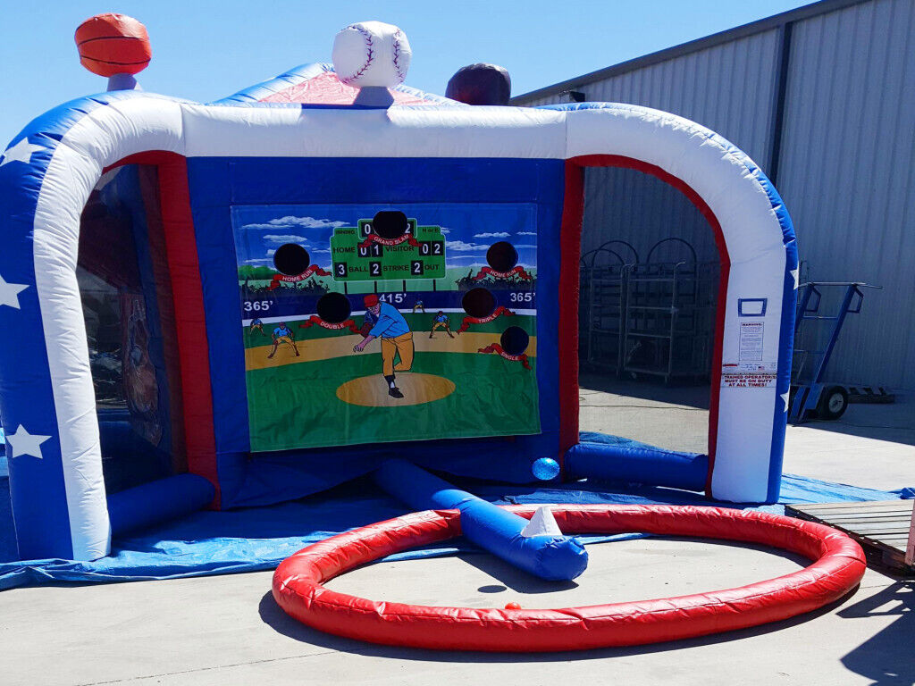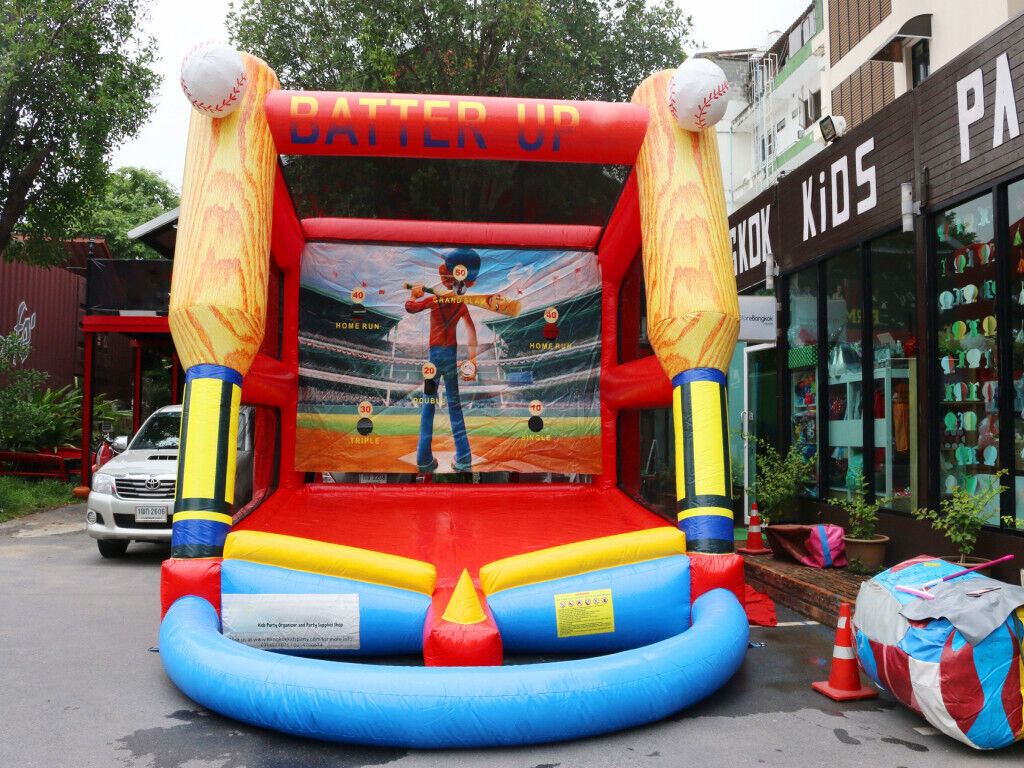 Where are the little baseball players? The inflatable baseball game is ready to begin. Come and join the game to see who will be the best scorer of the day.