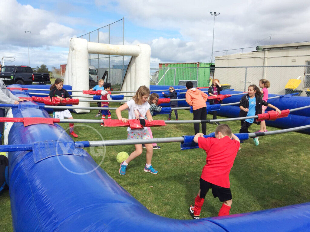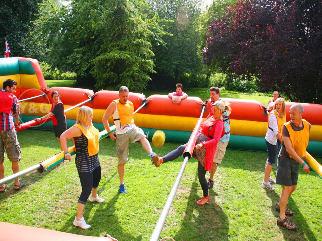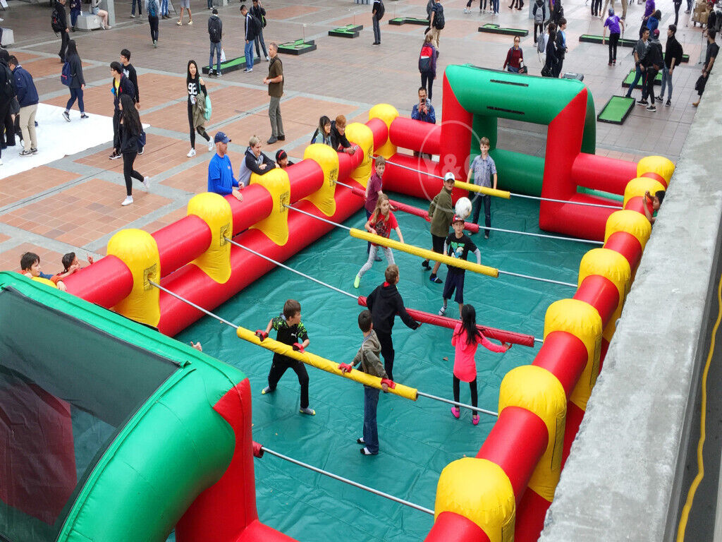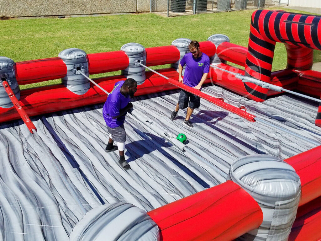 What interesting things happen when foosball becomes a life-size inflatable version?