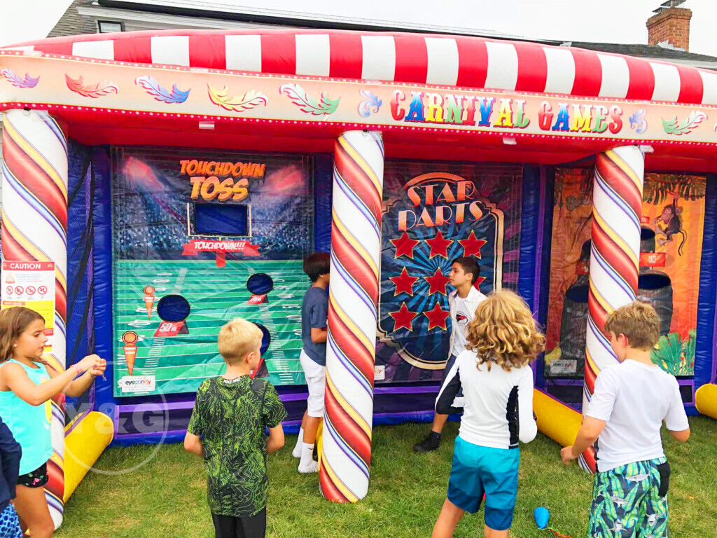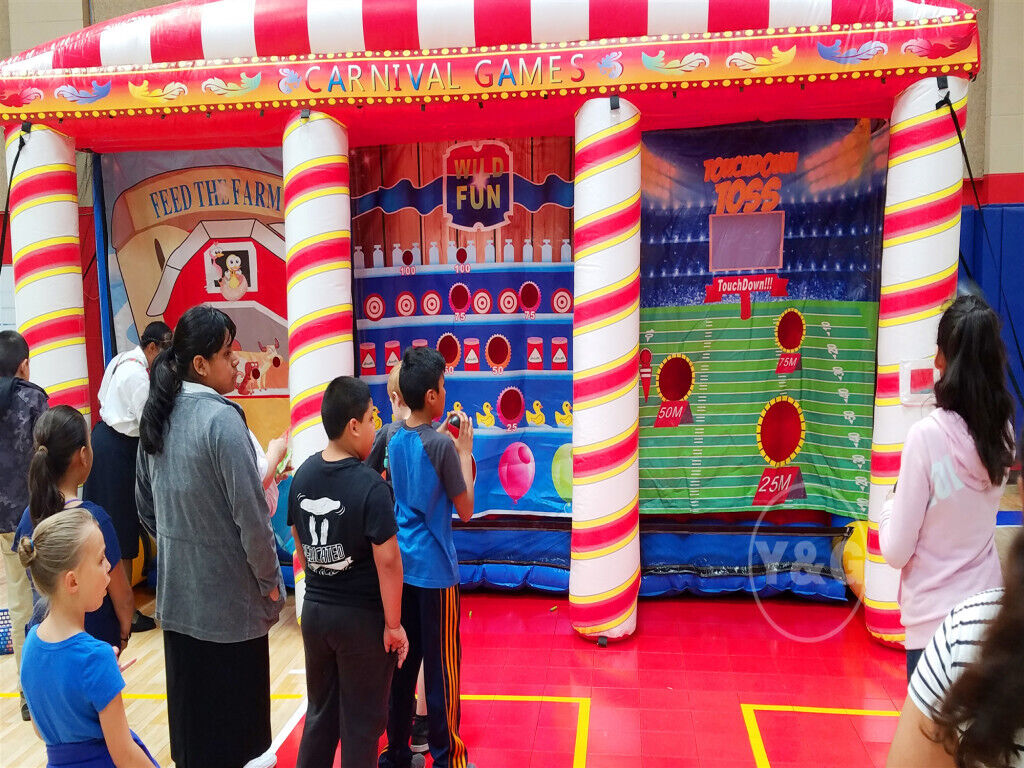 Carnival inflatable game features a variety of! You can shoot with your friends, have a fun boxing match, compare your shooting skills, or play ring toss. You will laugh like a child here!!