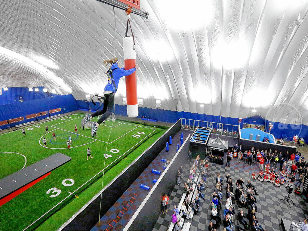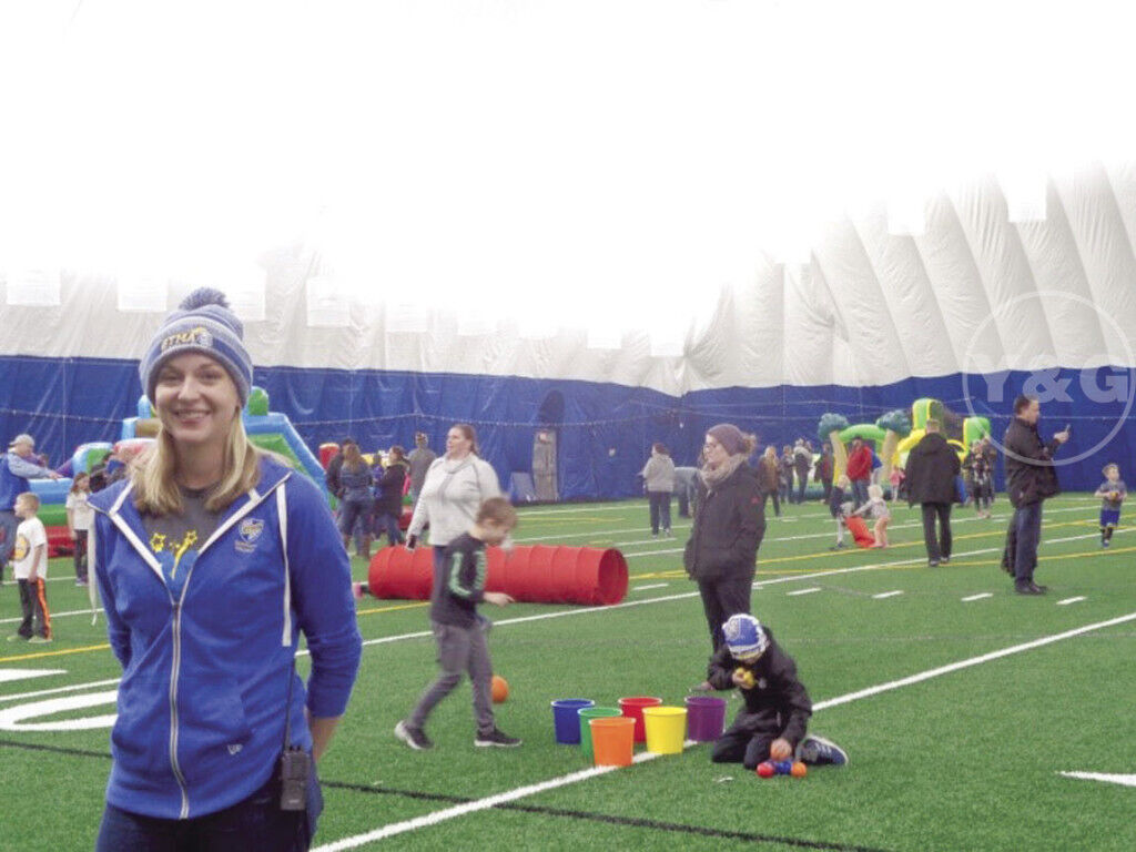 This inflatable sports tent is like a giant monster that can cover the entire playgroundand even the entire sports center.