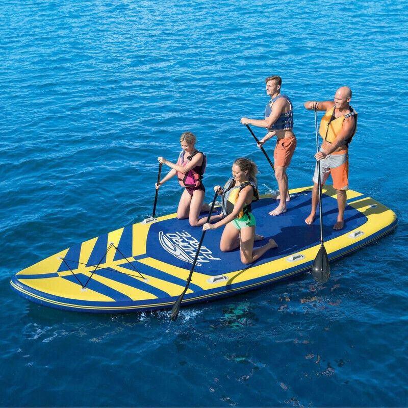Inflatable Team paddle boards are easier to carry, store and transport, and are almost completely secured against falling.It's hard to believe that a big size inflatable paddle board can actually float seven or eight people, but when inflated to the right PSI, higher quality inflatable boats can be just as rigid and sturdy as conventional ones boards. Today's ISUPs are designed with a drop-stitch technology that allows for higher air pressure and increased stiffness.