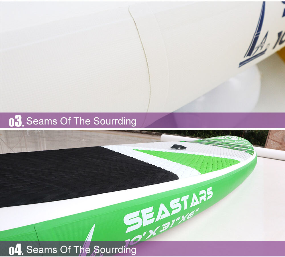High end standard: PVC anti UV, Fire resistance,Auto cutting machine, silk screen print with UV oil surface protect,Korean glue,A/C control process, high density EVA pad ,high end fin box available