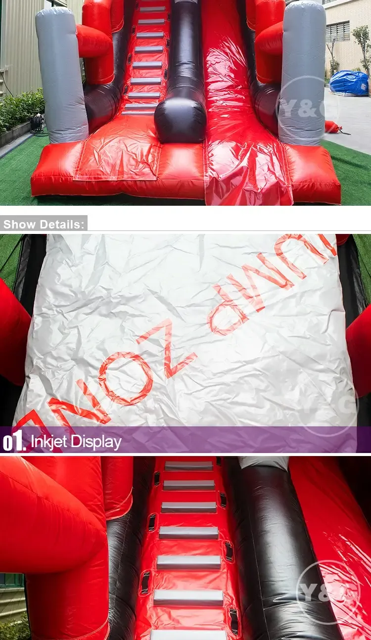 Immerse children in a lush jungle adventure with our Cliff Jump Blow Up Water Slide, featuring cascading waterfalls, tropical animals, and a twisting slide that splashes into a refreshing lagoon.