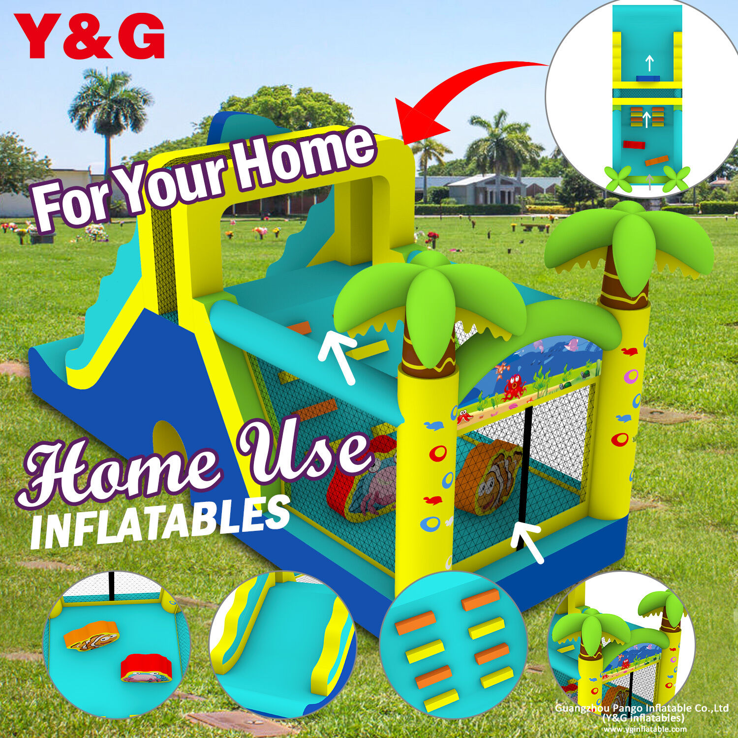 01. All jumping area use the 0.4mm 840D thicker PVC tarpaulin, is more durable and can be used for a long time.02. All the inside joint “I beam” fabric use 190t nylon material, the tensile force is over 180 pounds. Provide a durable bouncing performance.03. To ensure customer’s health, all materials Y&G used conform to European and American standards, and even better than the standard. Also, each product is tested carefully to confirm that they 100% meet the entire Consumer Product Safety Information Act (CPSIA), including phthalates and lead content in both surface coatings and structures.