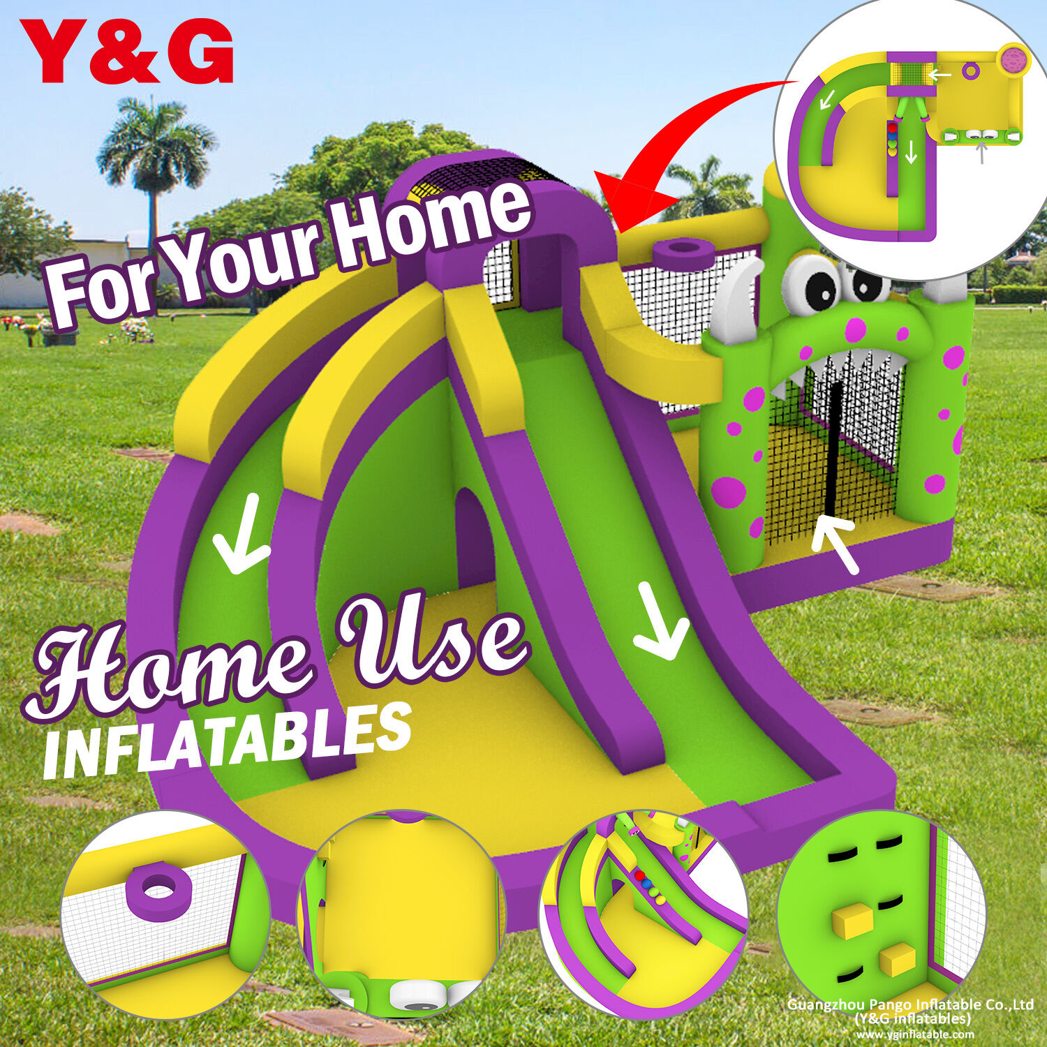 Inflatable bouncers and water slides from Y&G will make your kids screamed with delight! And you will love them too, because they are easy to inflate,quick to release and convenient to store in unfriendly weather. Get ready to be the most popular house on the block with these lovely toys and encourage kids to get hopping and bouncing all summer long.