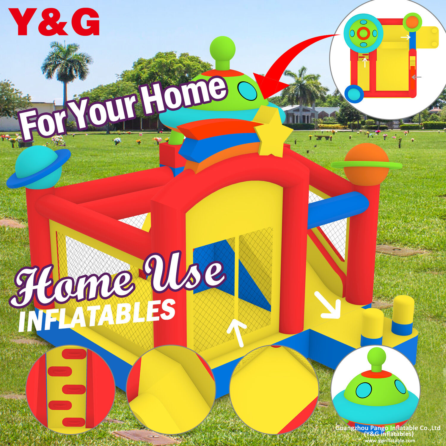 Inflatable bouncers and water slides from Y&G will make your kids screamed with delight! And you will love them too, because they are easy to inflate,quick to release and convenient to store in unfriendly weather. Get ready to be the most popular house on the block with these lovely toys and encourage kids to get hopping and bouncing all summer long.